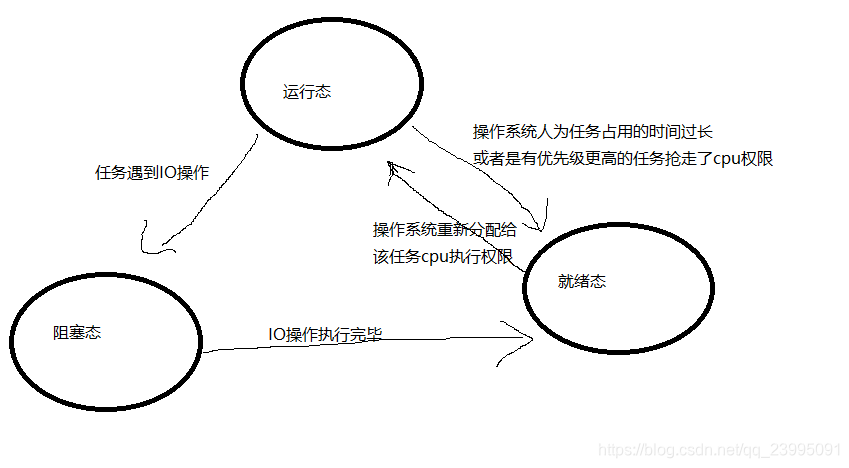程序运行态:运行态、就绪态、阻塞态